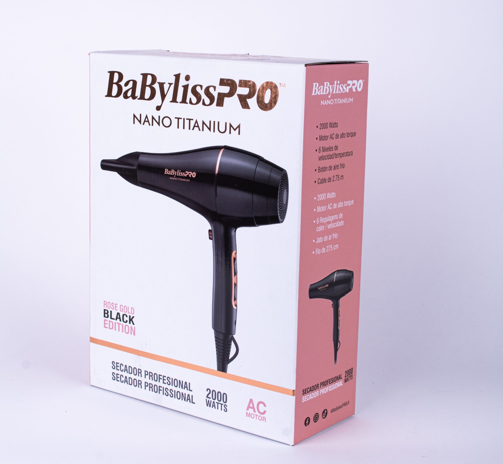 El potente motor profesional del Secador Rose Gold Black de BaBylissPRO, con 2000W de potencia, ayuda a obtener una salida de flujo de aire de gran presión que penetra instantáneamente en el cabello para un secado ultra rápido y de mayor duración. Este motor ha sido desarrollado para un uso profesional, prolongado e intensivo, y tiene una larga vida útil. La edición limitada del Secador BabylissPRO Nano Titanium Rose Gold Black ofrece muchas ventajas. El titanio es un excelente conductor de calor que se mantiene estable incluso a altas temperaturas. La tecnología del titanio utiliza micro-partículas de titanio para lograr un rendimiento óptimo y dejar el cabello hermoso y saludable. El titanio emite calor infrarrojo lejano, que penetra profundamente en el tallo del cabello, secándolo desde adentro sin dañarlo. También emite iones negativos, lo que permite un secado más rápido mientras mantiene el equilibrio de hidratación del cabello. El Secador Nano Titanium Rose Gold Black dejará tu cabello suave, sedoso y libre de frizz.