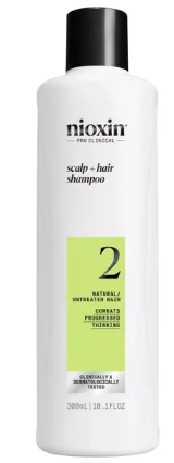 Nioxin – System 2: Ofrece al cabello más densidad mientras lo protege contra el daño. Especialmente diseñado para cabello fino con notable adelgazamiento y escasez. Ofrece mayor densidad, brillo natural y protege el cuero cabelludo.