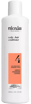 Nioxin – System 4: Diseñado específicamente para un cabello tratado químicamente, fino y con pérdida perceptible, el Sistema 4 incluye un limpiador voluminizador, un acondicionador ligero y un tratamiento sin necesidad de enjuague para proteger el cuero cabelludo, amplificar la textura del cabello y ofrecer equilibrio de la humedad al cabello coloreado.